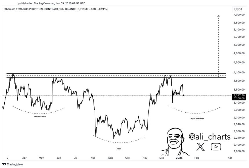 Despite the prevailing negative sentiment, respected analyst Ali Martinez has offered an optimistic perspective on Ethereum’s future. Martinez’s analysis indicates that a potential drop to the $2,900 mark could present a favorable “buy-the-dip” opportunity for long-term investors. He predicts that this decline could pave the way for Ethereum to reach new heights, with a bullish price target of $7,000 in the upcoming market cycle.