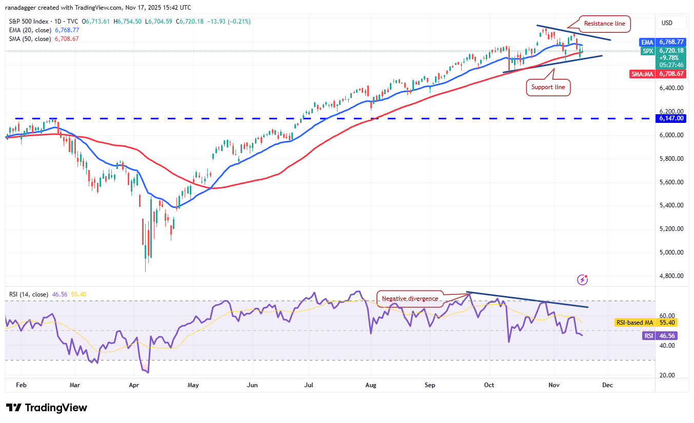 Conversely, if the S&P 500 breaks above resistance, a rally toward 7,000 and potentially to 7,220 could unfold, indicating a resumption of the uptrend and influencing crypto markets accordingly.
