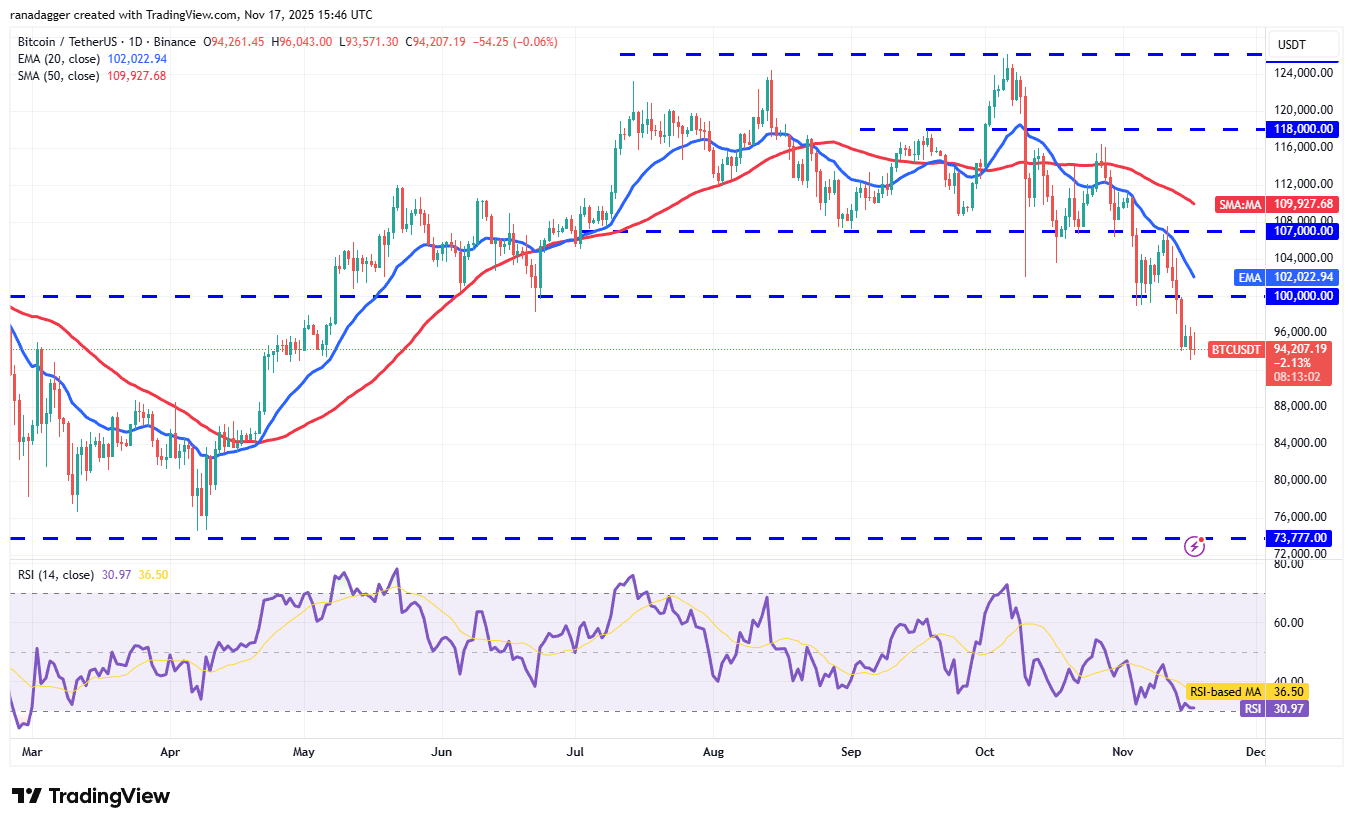 A quick move above the 20-day EMA ($102,022) is critical for bulls to weaken bearish momentum. If successful, Bitcoin could target the 50-day SMA near $109,927, paving the way for a potential reversal.