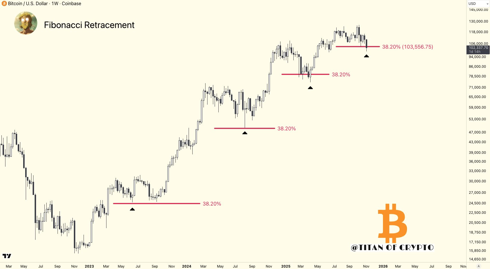 - Bitcoin is approaching a crucial weekly close, with $103.5K as a significant threshold based on Fibonacci retracement levels.
