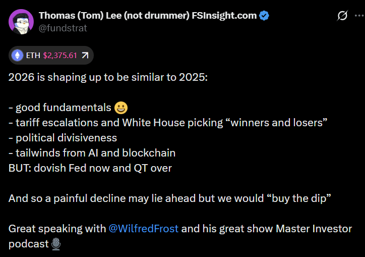 - Fundstrat notes on 2026 dynamics and Tom Lee’s commentary (Fundstrat on tough start to 2026).