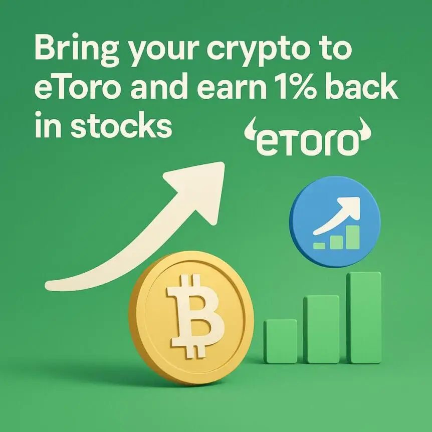 Until 31 January 2026, eligible users who transfer cryptoassets to eToro will receive 1% of the net total crypto deposit value back in stocks, which will be added directly to their trading account.