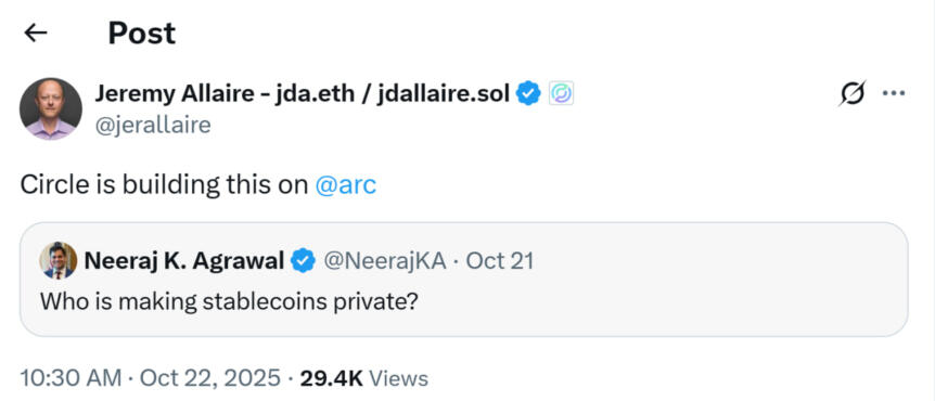 Originally announced in August, Arc is expected to utilize USDC as its native gas token, with plans to support private stablecoins issued by various entities on the network. This development hints at the blockchain’s broader role in optimizing cross-border payments, foreign exchange, and global finance infrastructure — marrying traditional finance stability with the innovation of blockchain technology.