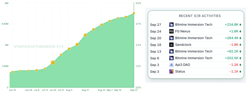 BitMine Immersion has increased its Ether holdings to over $10.6 billion, aiming to secure 5% of the total ETH supply.