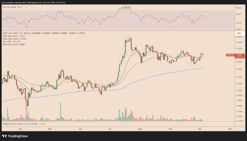 In the short-term, XRP could test the flag support around $2.93. A decisive close below this level would validate the bearish scenario, increasing the likelihood of a move down to $2.60—the next significant support zone aligned with the 200-day EMA.