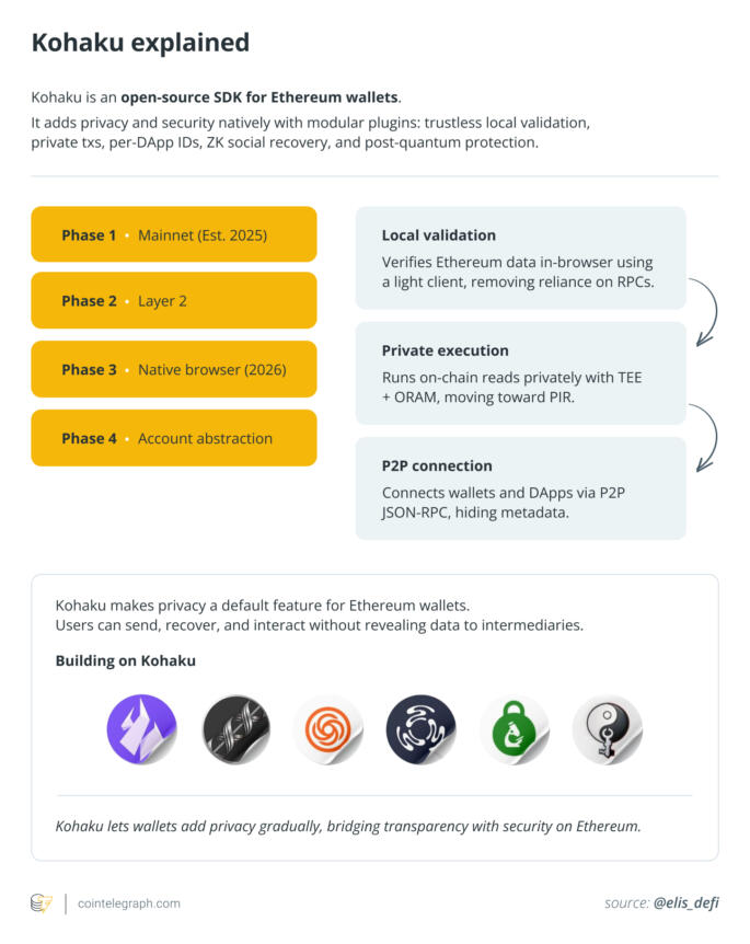 However, in 2025, typical user experiences are still marred by seed phrases, specialized wallets, dependency on centralized exchanges for simplicity, and inconsistent privacy controls. Kohaku aims to resolve these issues.