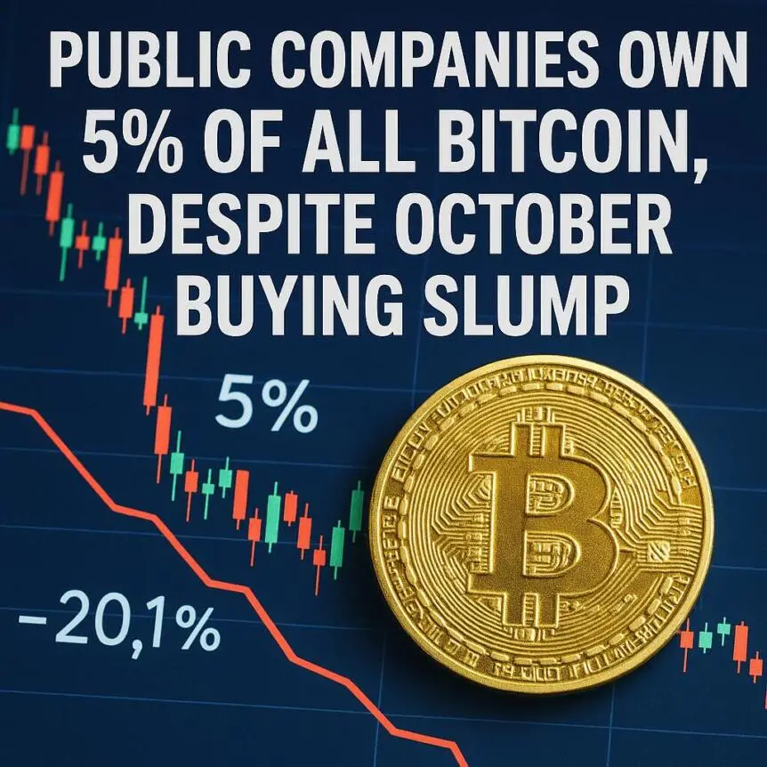 Public companies now control approximately 5% of Bitcoin’s total supply, with around 70% to 75% of corporate-held BTC classified as illiquid, remaining unmoved for over a year, supporting price stability despite reduced spot demand.