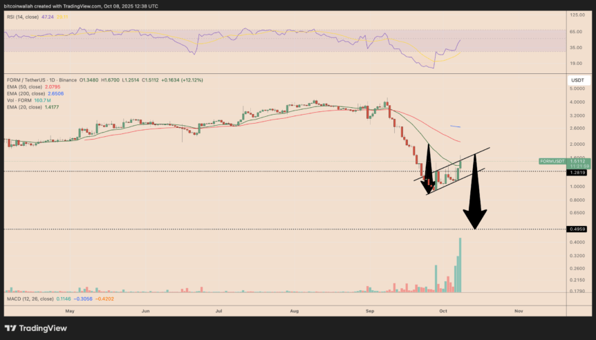 FORM, the memecoin token on BNB Chain, shows a bullish reversal pattern with potential for a 40% rally toward $2 amid rising trading volume and positive technical signals.