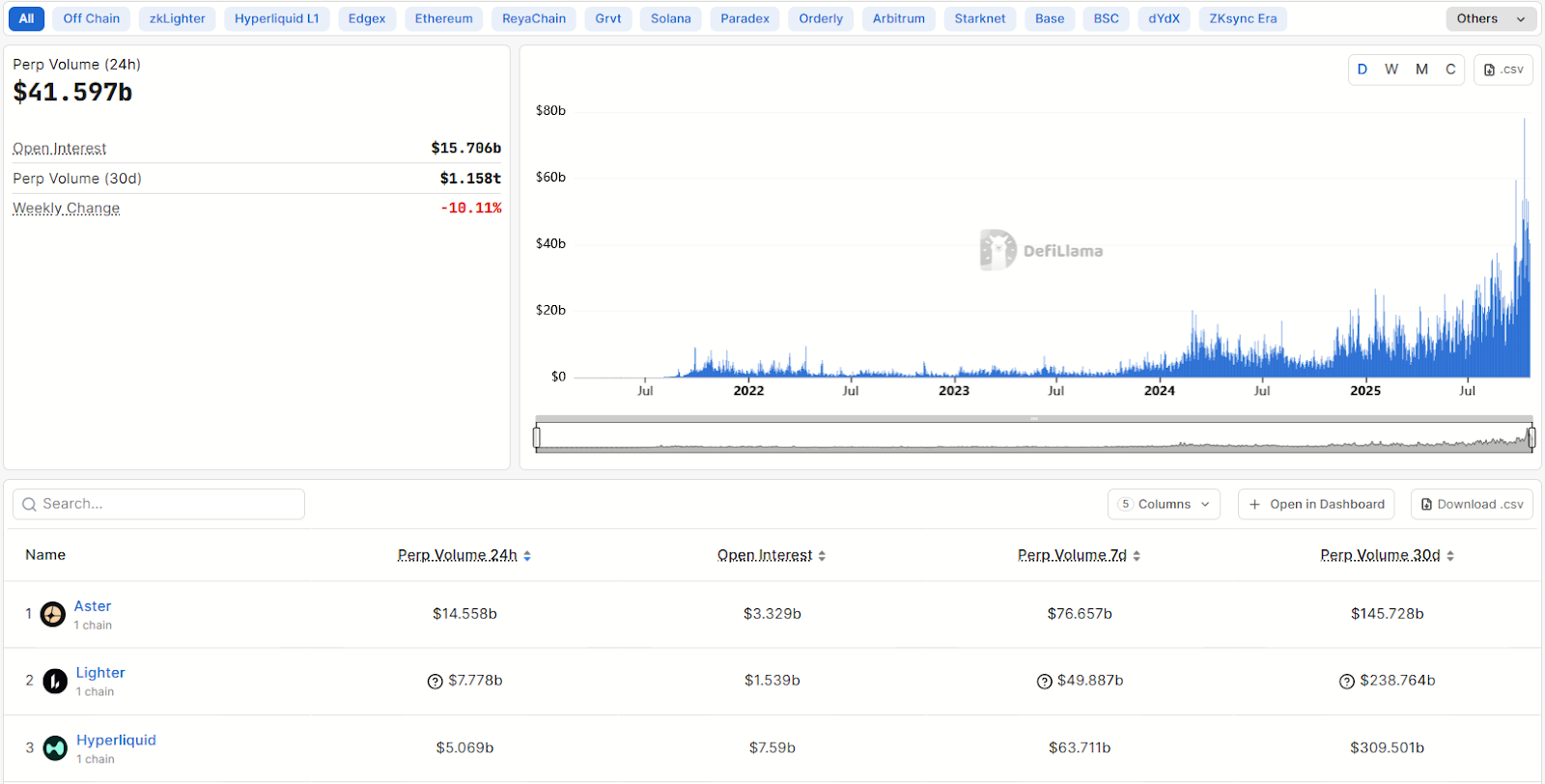 Meanwhile, Aster, another major DEX built on Binance’s BNB Chain, recently overtook Hyperliquid in daily volume, hitting $14.5 billion — nearly three times higher than Hyperliquid’s 24-hour activity. However, blockchain data from DefiLlama shows Hyperliquid’s 30-day volume still doubles Aster’s, highlighting fierce competition within the DeFi sector.