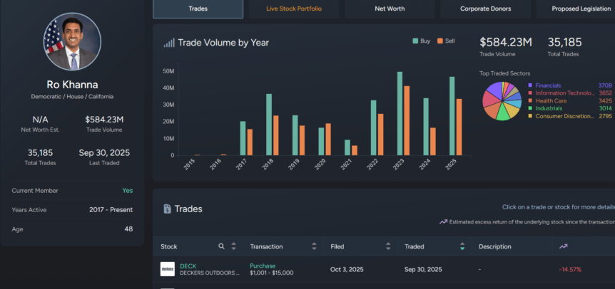 Meanwhile, Republican and Democratic lawmakers continue to debate the ethics surrounding politicians’ investments in stocks, with a bill expected to be voted on soon. Interestingly, Khanna’s personal investment history suggests he also has significant stakes, with over $80 million in stock trades in 2025 alone. Since entering Congress in 2017, he has executed more than 35,000 trades across sectors such as financials, technology, and healthcare, raising questions about potential conflicts of interest in policy-making.